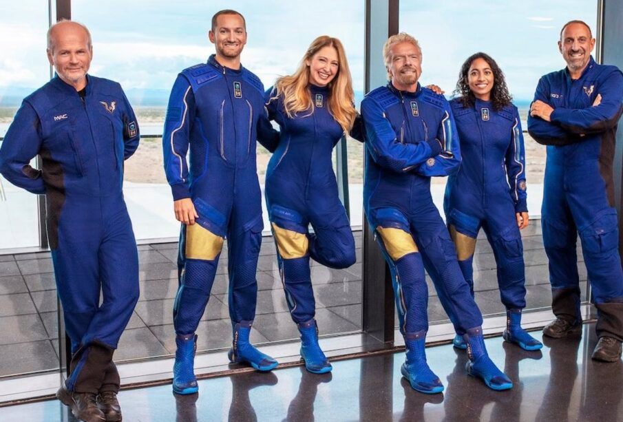 Onboard was Dave Mackay, pilot; Colin Bennet, lead operations engineer; Beth Moses, chief astronaut instructor; Branson, founder of VG; Sirisha Bandla, vice president of government affairs and research operations; and Michael Masucci, pilot.