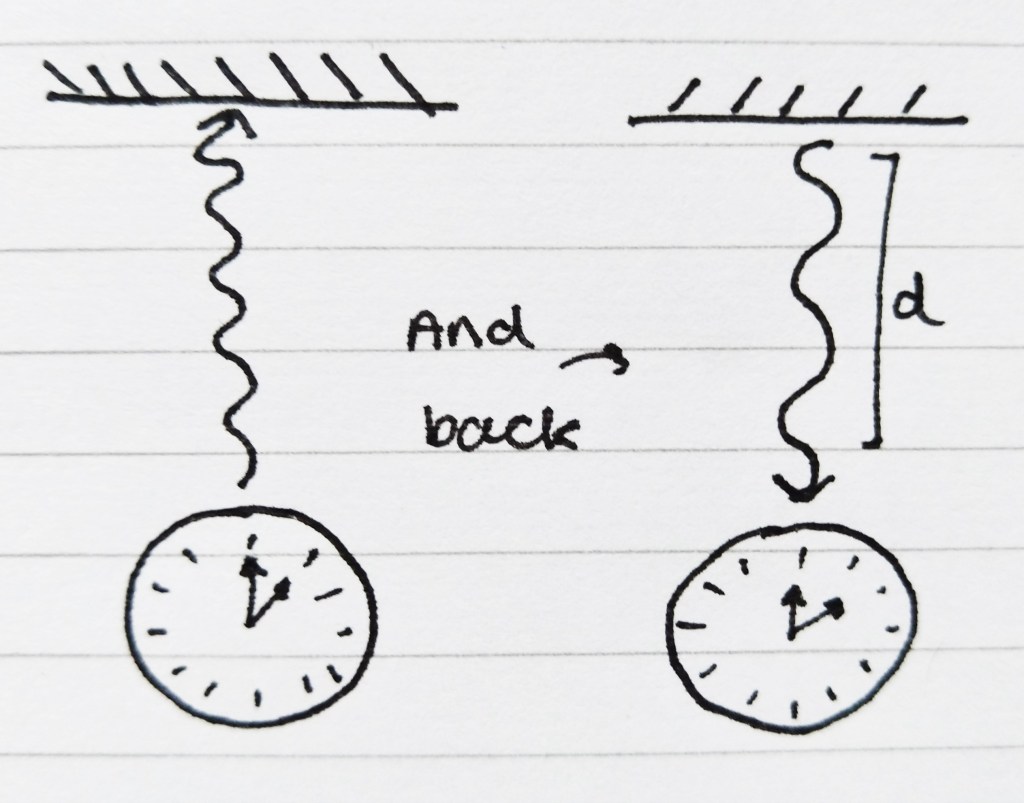 For a stationary clock, the photon will just move back and forth some distance, let’s call this d.