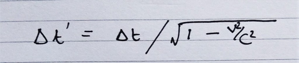 With a bit of rearranging we can make delta t’ in terms of delta t, we can get this beauty!