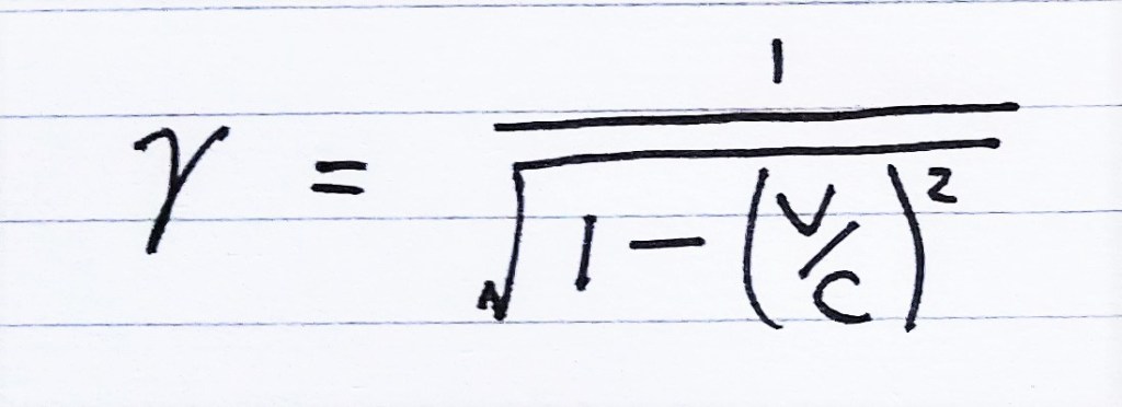 That v/c squared term can be turned into a simple identity called the Lorentz factor:
