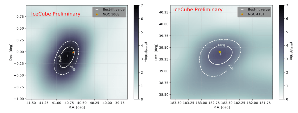 Other investigations such as those detailed in a paper by Goswami et al and Glauch et al found NGC 1068 (other names include M77 and the Squid Galaxy) and NGC 4151 (colloquially known as the “Eye-of-Sauron” Galaxy) to also have relatively high correlations with neutrino events.