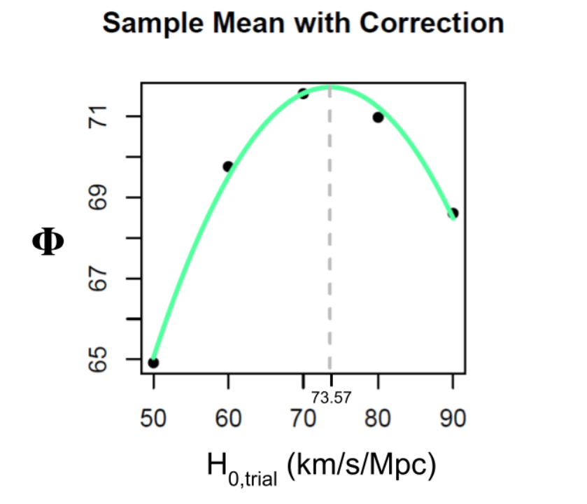 It could also be the case that all three techniques are overestimates. It would be interesting to use a simulation that is based on supernova estimates, and to also use real life data. My predecessor did this and got an estimate of around 74-75 if I remember correctly. At the end of the day, better equipment will hopefully fix this (even though it didn’t for the first two methods and made things worse).