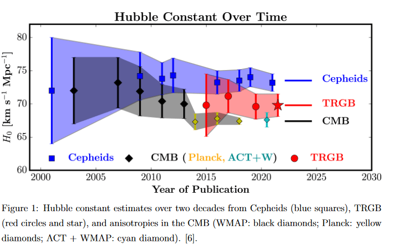 One of the biggest problems we’re currently facing in astrophysics is figuring out the rate of expansion of the universe, which we quantify as Hubble’s constant (or H0). This is commonly called the Hubble Tension or the melodramatic call it the crisis in cosmology. This comes from a statistically significant disagreement in values for H0 depending on the method used to obtain an estimate, with improvements to equipment sensitivity only exacerbating these discrepancies further.
