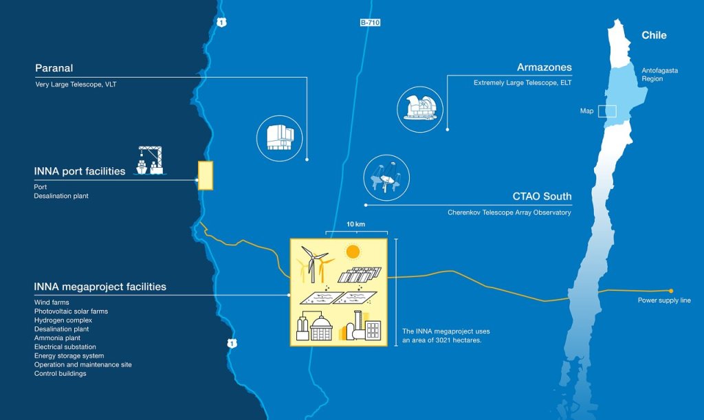 A recent report by the European Southern Observatory (ESO) has unveiled worrying results on the impact of a potential nearby industrial complex. The INNA project, owned by INNA Soluciones Renovables SpA, is a proposed renewable energy plant looking to provide Chile with environmentally-friendly hydrogen and ammonia, but talks are underway to expand production to include solar and wind energy as well.